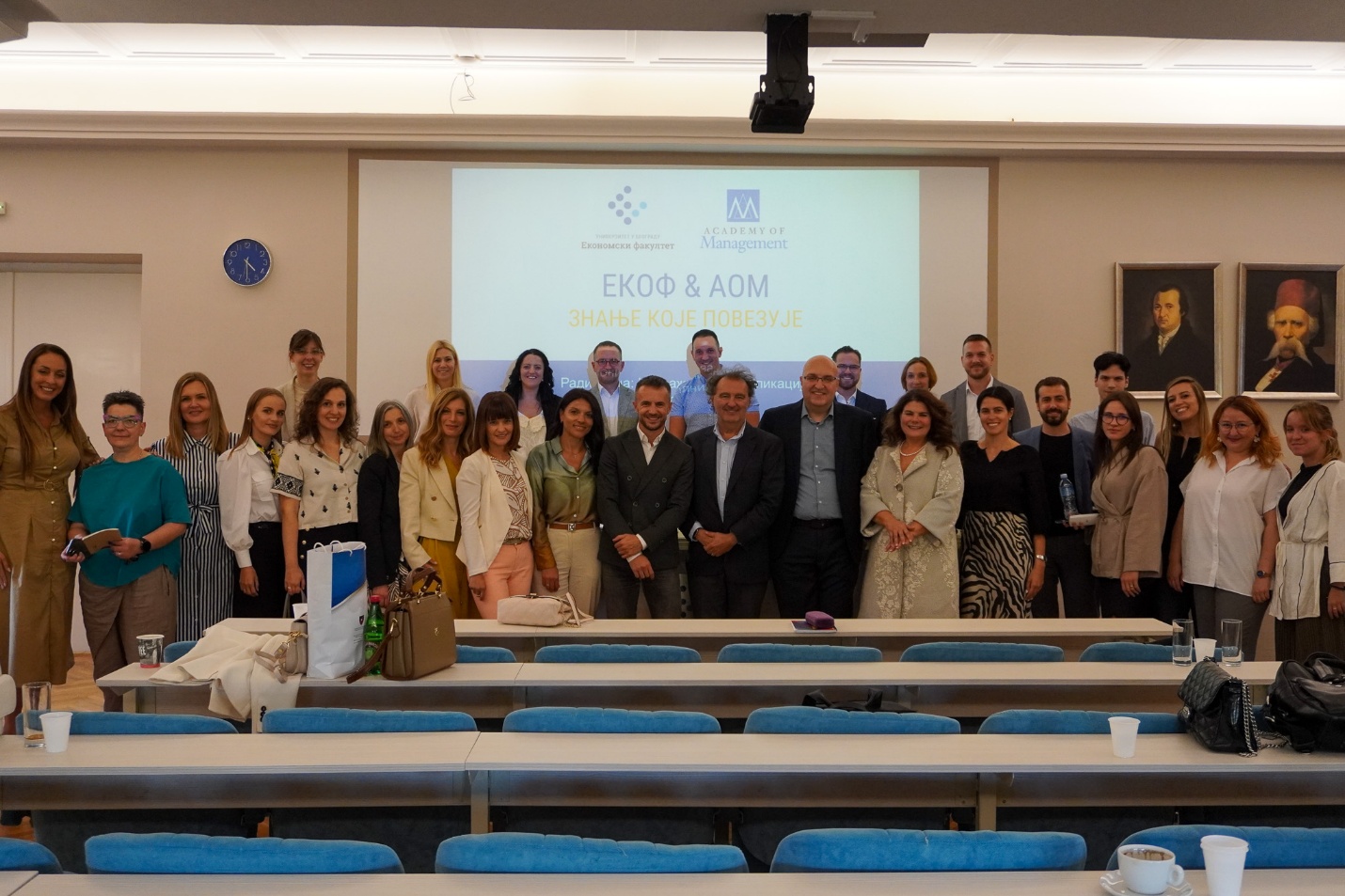 Радионица, одржана у Професорској сали Економског факултета у Београду, била је прва АОМ радионица у Србији након потписивања институцијалног споразума између Економског факултет Универзитета у Београду и АОМ-а. Програм је водио проф. др Александар Стајковић, један од водећих свјетских истраживача из области организационог понашања, уз учешће представника AOM Global Initiatives tima. У фокусу радионице били су изазови и стандарди савременог истраживања, писање и пријављивање радова за међународне конференције, припрема за AOM Annual Meeting 2026 у Филаделфији, као и смјернице за избор одговарајућих истраживачких дивизија, структурирање радова и разумијевање процеса рецензије.