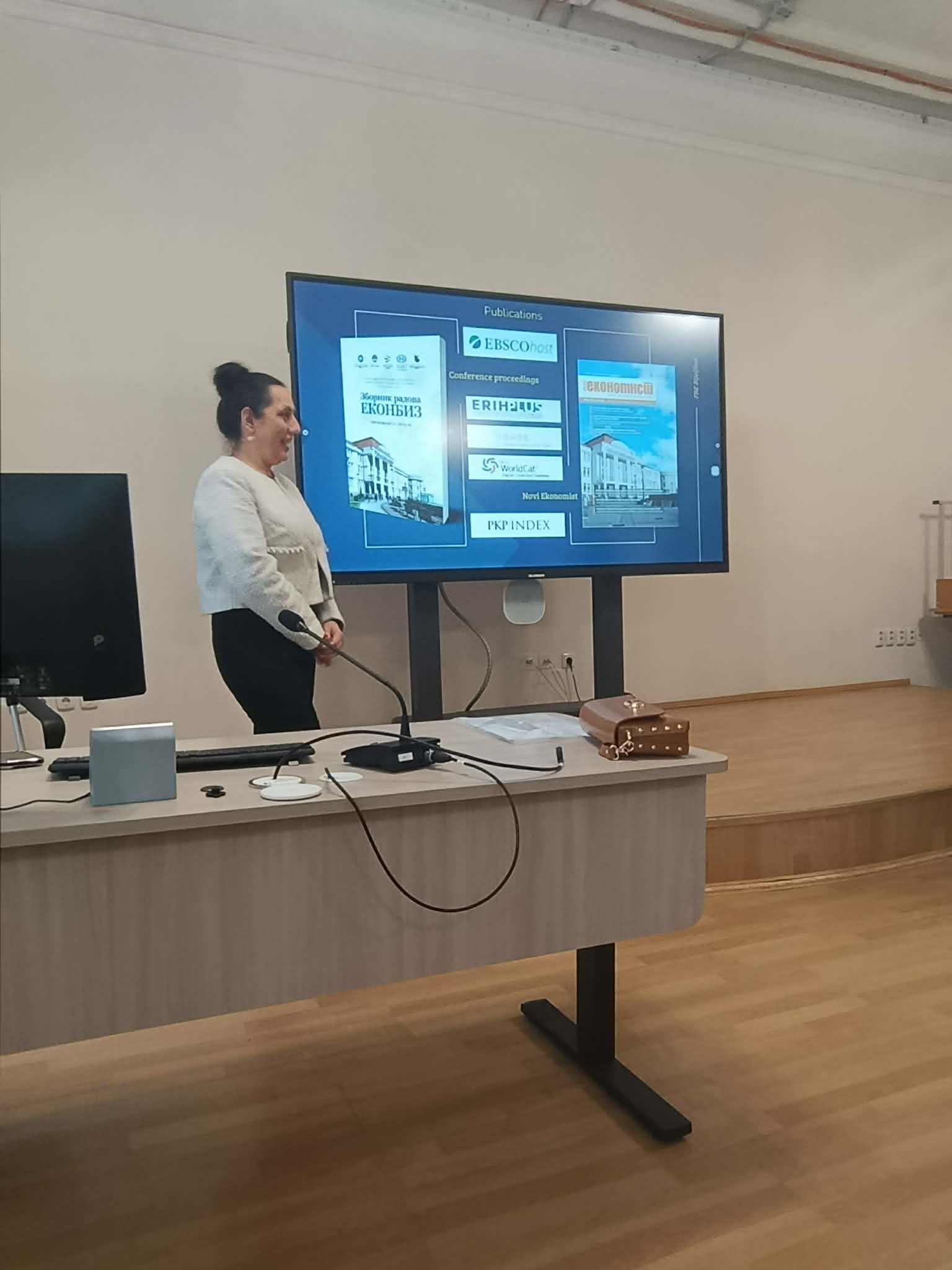 Dekanica je održala i gostujuće predavanje studentima ovog fakulteta, na kome je predstavila Univerzitet u Istočnom Sarajevu, Fakultet poslovne ekonomije, našu nastavnu platformu, kao i naučni rad, izdanja FPE i tekuće projekte.