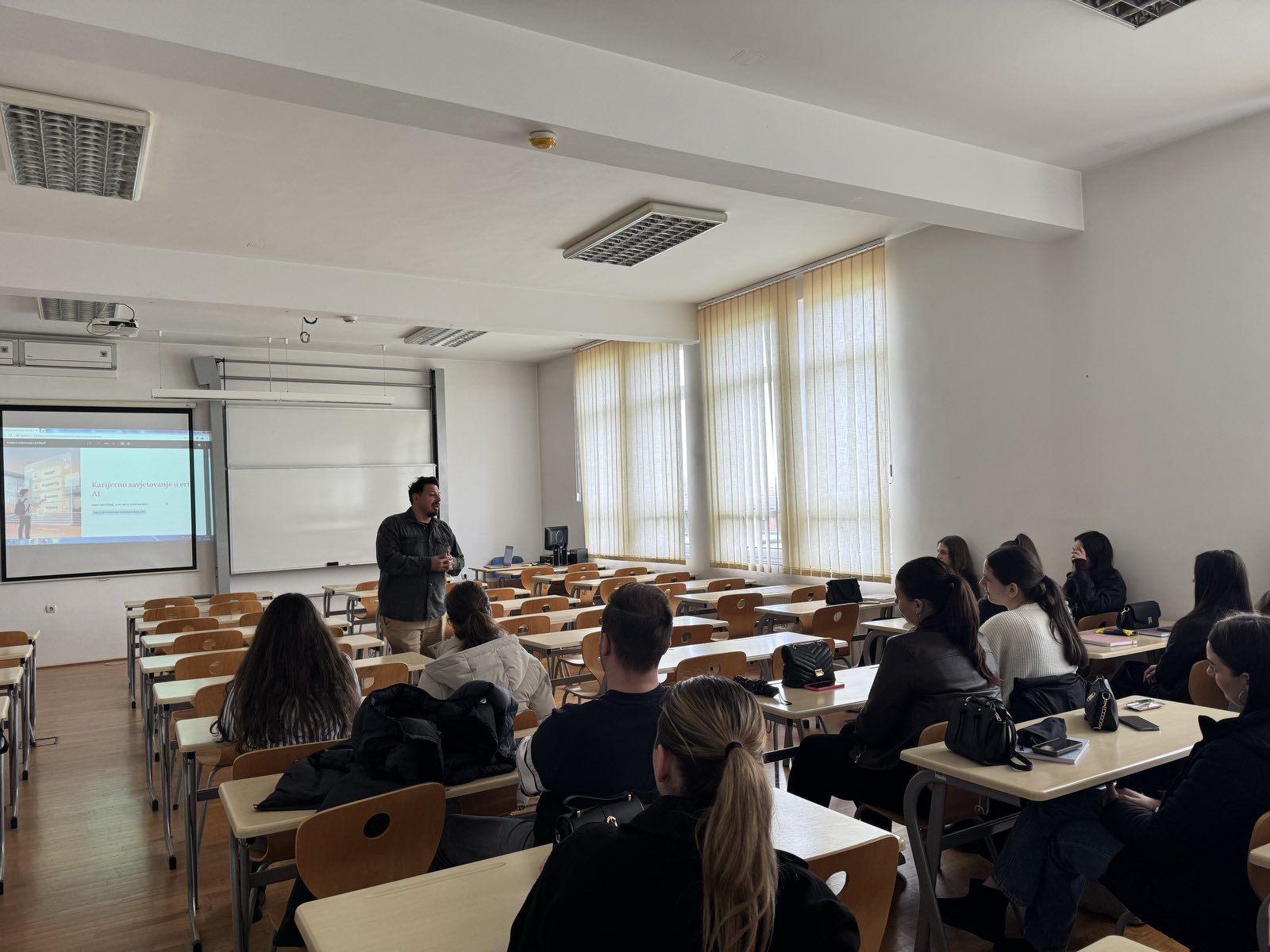 Присутни студенти су имали прилику да путем интерактивног приступа и практичних примјера стекну неопходна знања и вјештине потребне за успјешан приступ тржишту рада. Током ове радионице студенти су, такође, били у прилици да, путем реалних и конкретних примјера, науче на који начин да комбинују властито размишљање и АI као алат за доношење паметнијих каријерних и животних одлука.